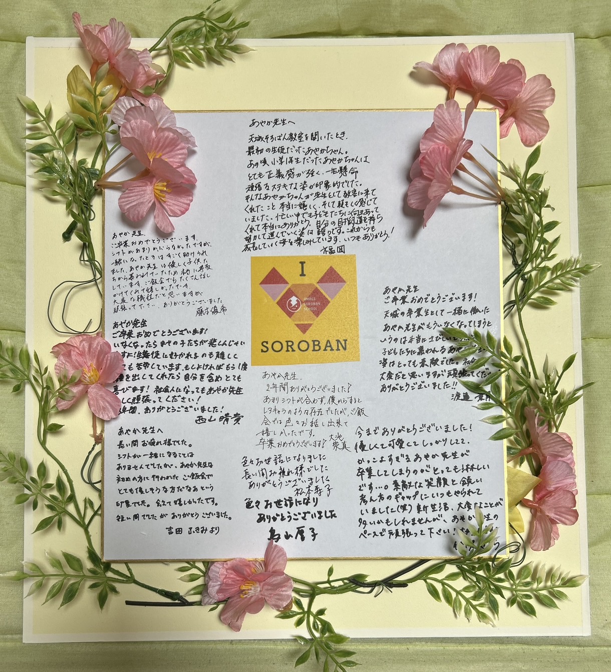 冒頭の写真の真ん中、あやか先生、卒業します。
