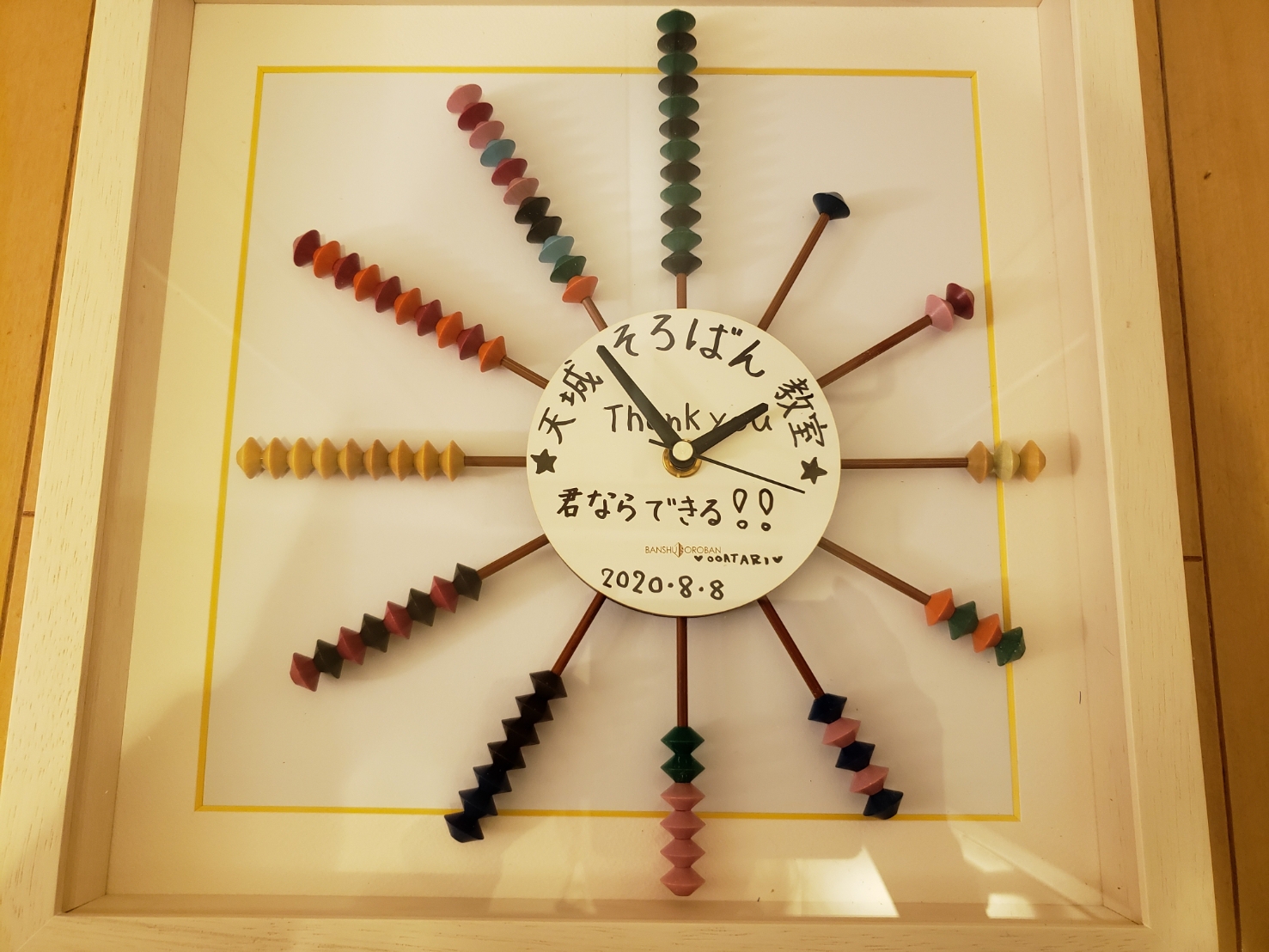 君ならできる!!とてもお世話になっている保護者の方にこんな素敵な時計をいただきました!そろばんの玉が時計になっています♪ 真ん中の言葉...