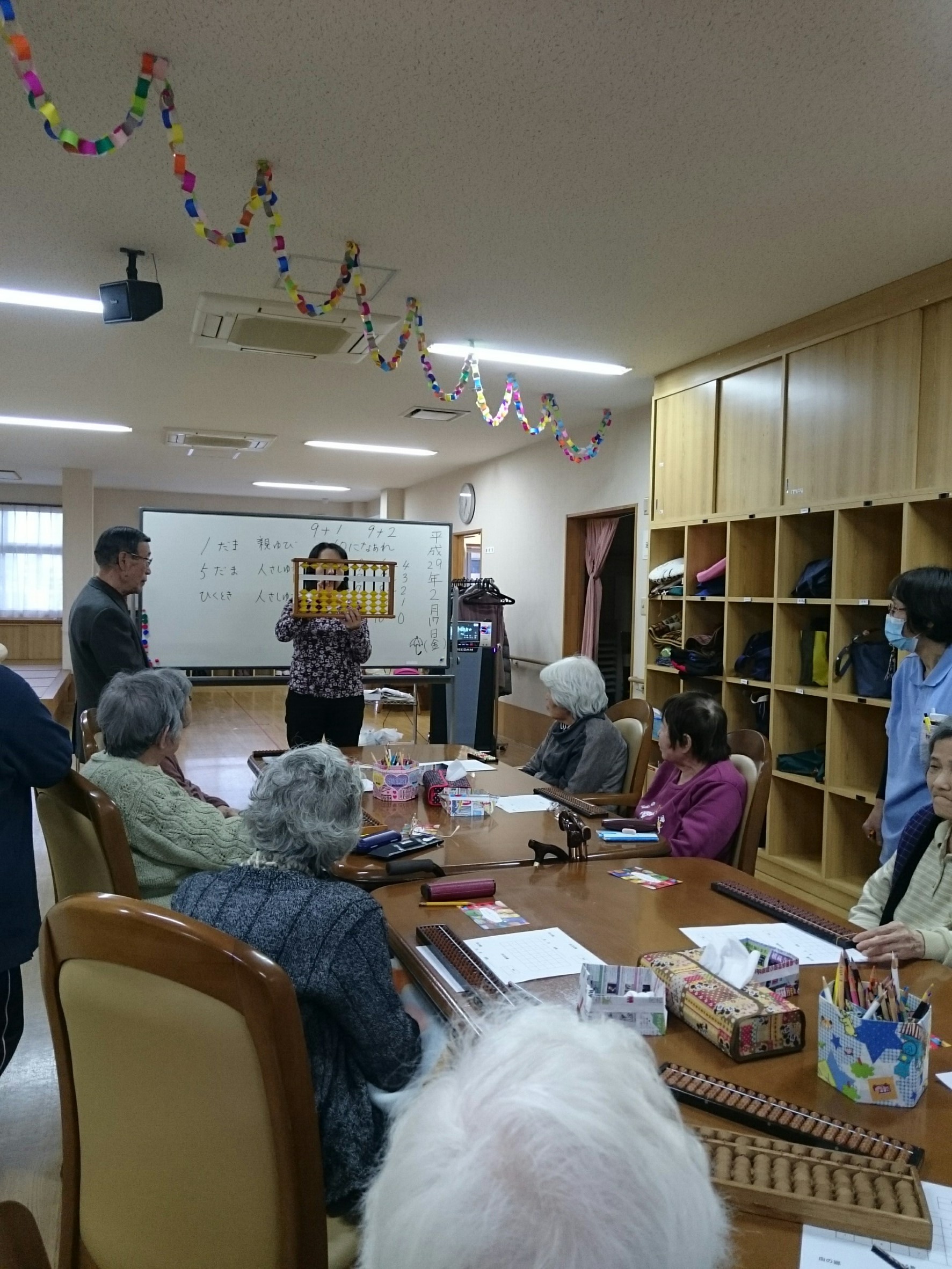 ■プリントにて計算、漢字等書くのが苦手な女性が、そろばんは昔、経理をしていたとの事で、自ら進んでされる。
