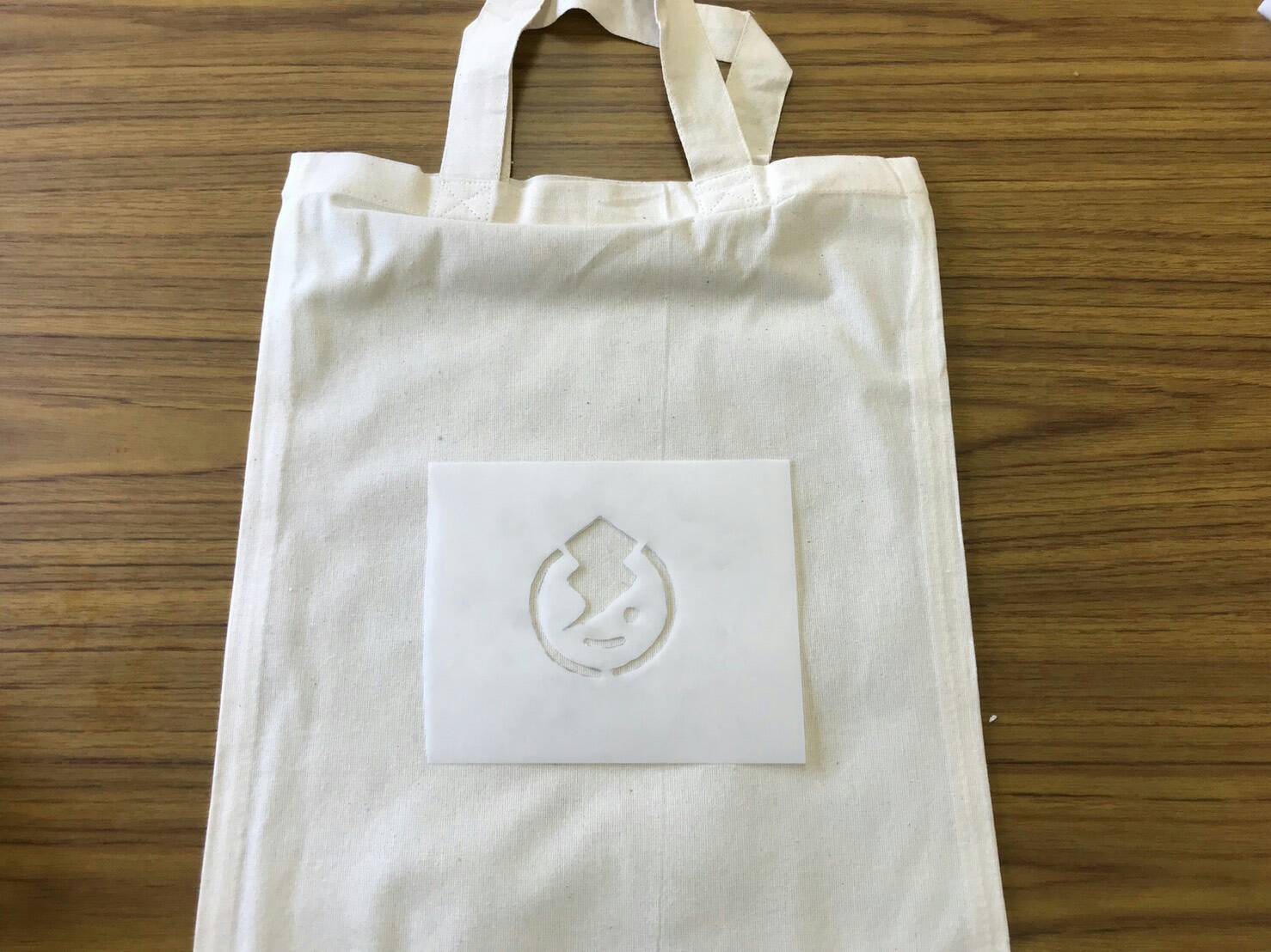 無地のバッグにインクで版画のようにオリジナルバッグ作りをしました。