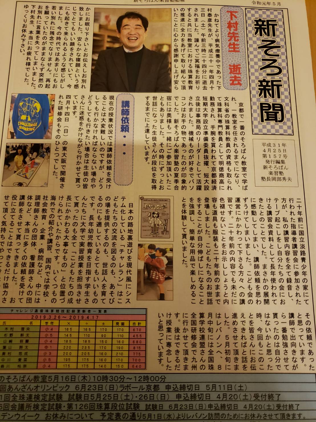 新そろばん楽習塾のスタッフの先生が昨日お亡くなりになりました。