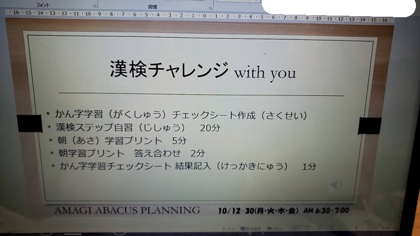 zoom、もしくは摩耶教室で漢字の学習時間を