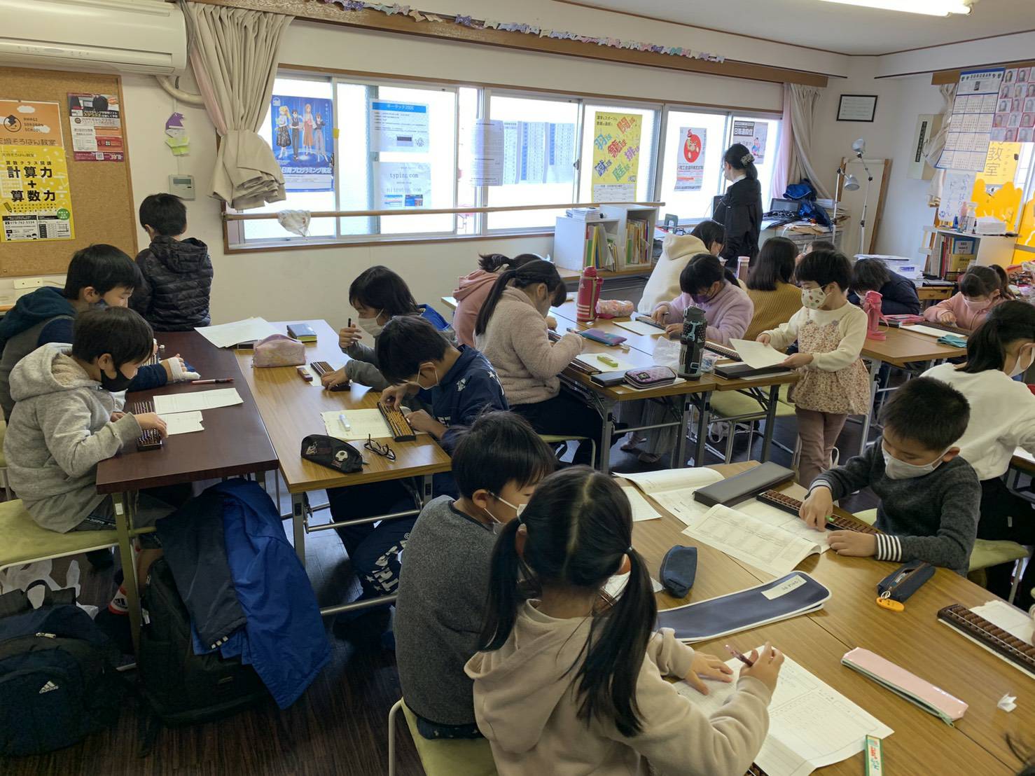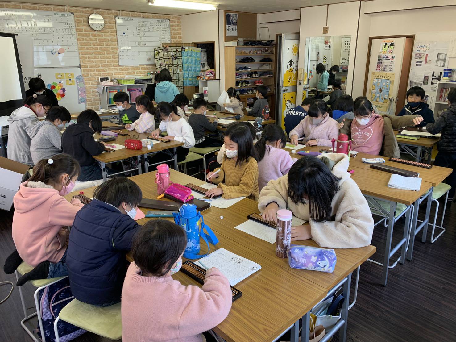 始まるやいなや、先ほどの賑やかさはどこへいったのか、と思うほど静かになり、そろばんをはじくパチパチという音だけが教室に響き渡っています。