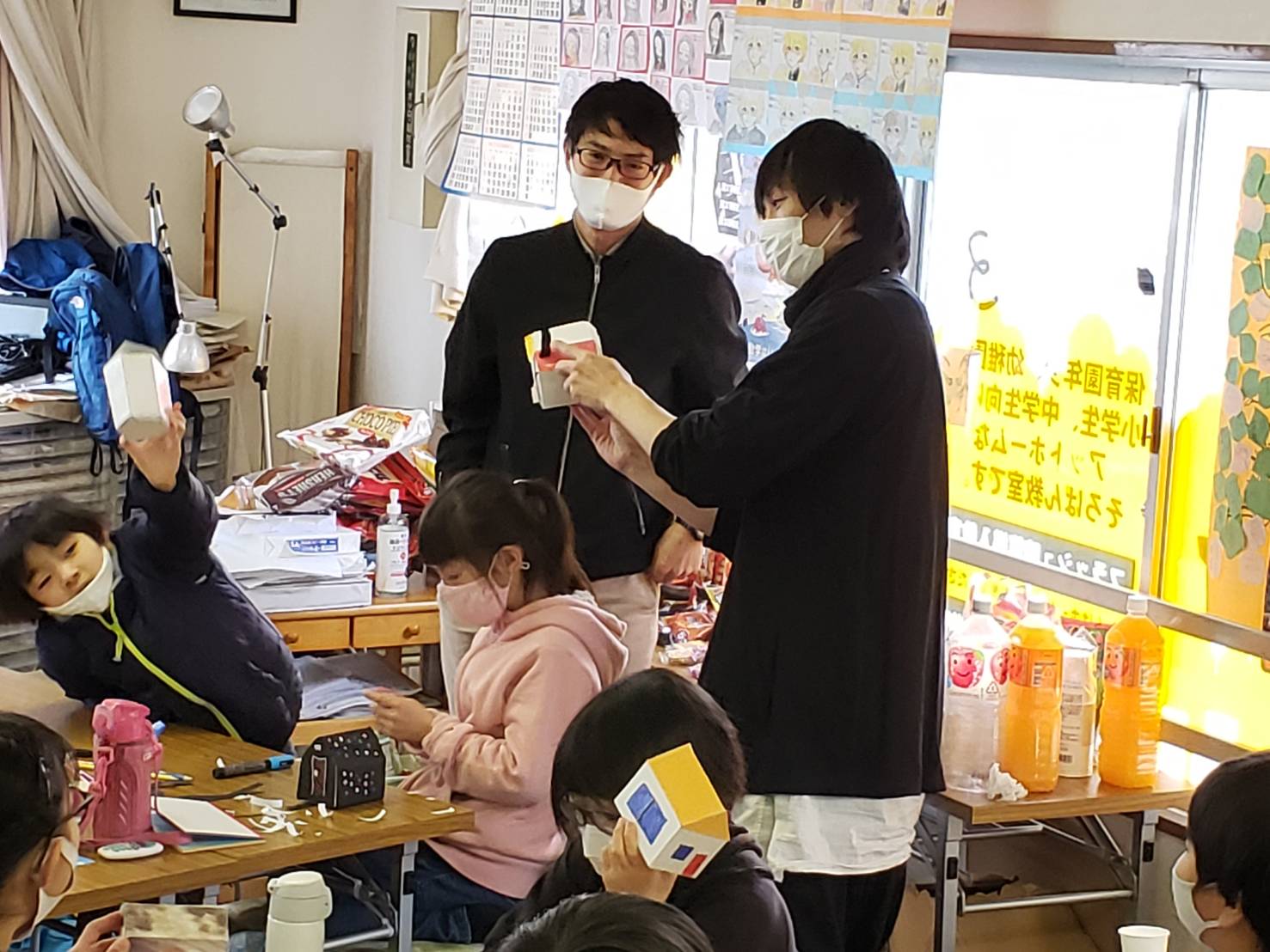 〇〇を作ってみよう、をテーマに難しいことを考えずに物作りを自由に楽しむ時間です。身近にある材料を使い、方法にこだわらず自由な発想で完成へ持っていくことを心がけています。