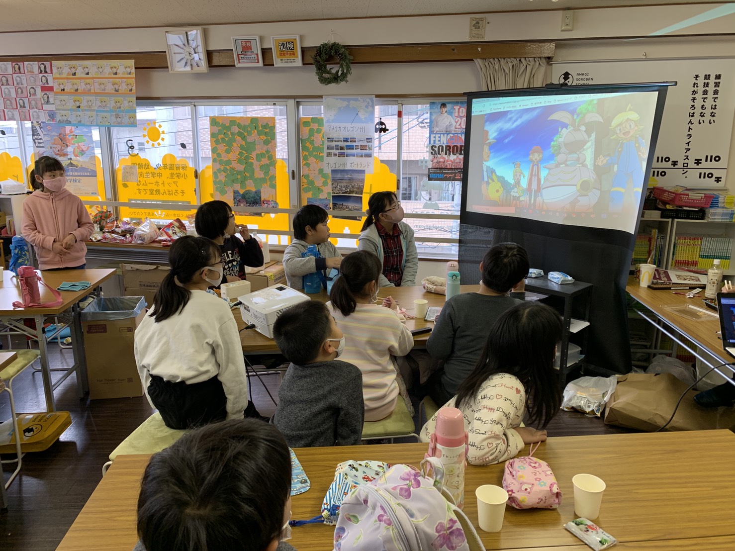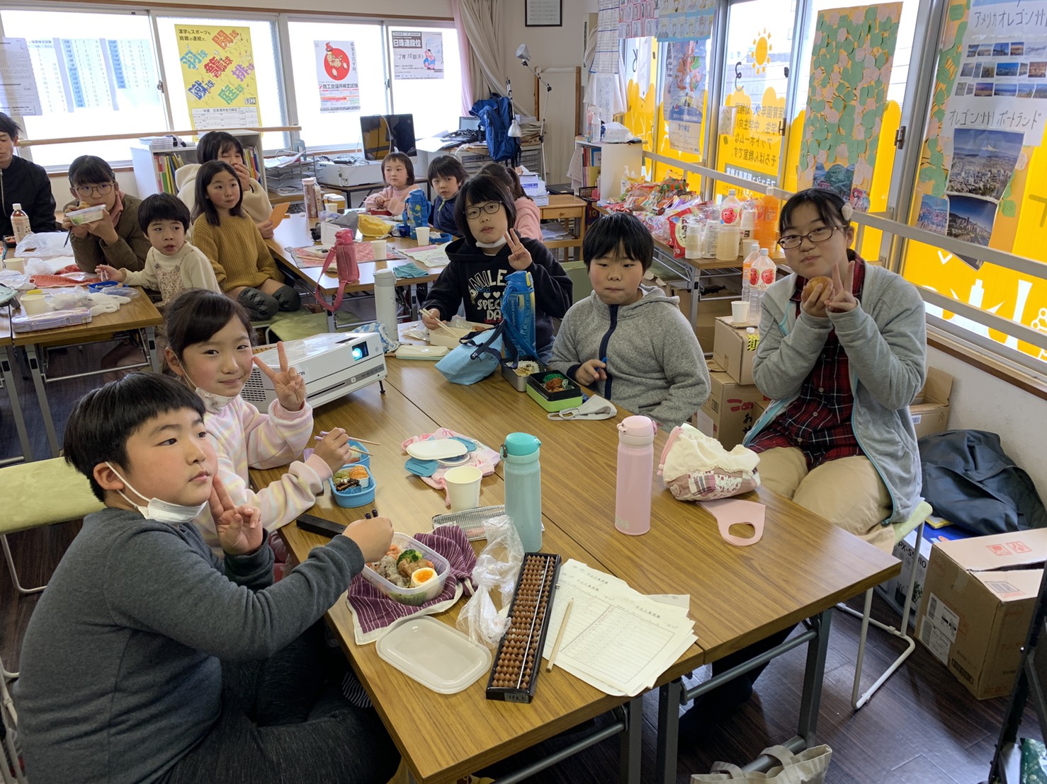 2時間そろばんに取り組んだ後は、ランチタイム。持参したお弁当を食べながら、映画鑑賞を楽しみました~。