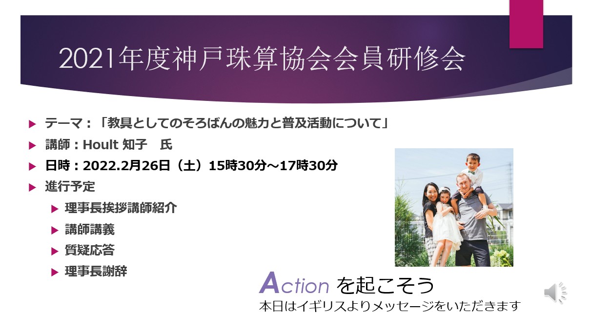 以前、地元神戸珠算協会会員研修会でイギリスからオンライン講習会に