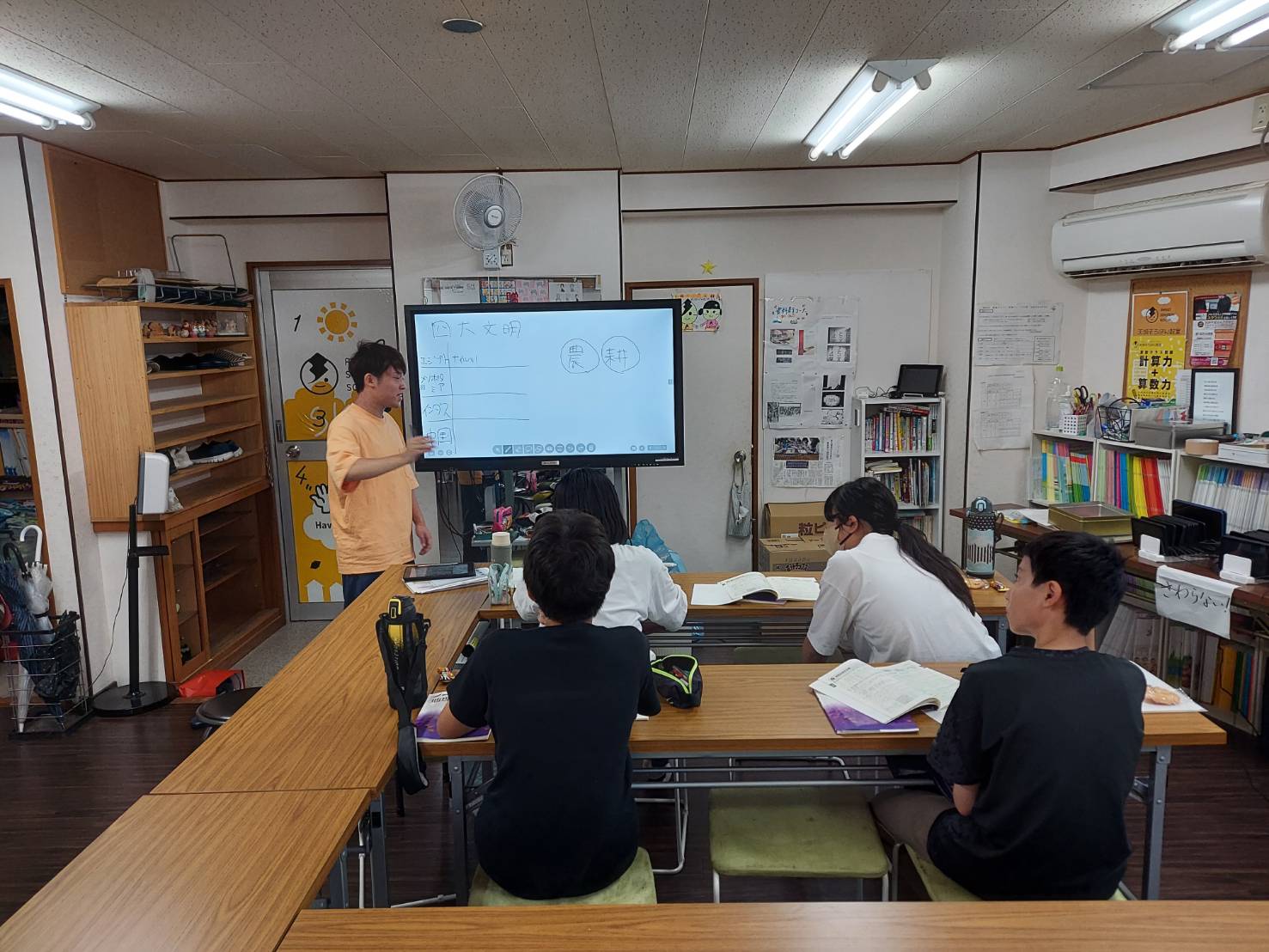 date | 2023.7.12〜 お兄さん、お姉さんのサポートは最強 〜 Tweet 今月から、スカイ天才倶楽部の社会国語クラスが始まりました! 今回は中学1年生がメインのクラスです。 さらに理科コースもスタートしました✨中学生は、部活も勉強も忙しくなってきましたが目標に向かってチャレンジ!大学生の学生講師がそのチャレンジをフォローします。 やはり、歳の近い先生方のサポートは子供たちの大きな励みになります。憧れになるんですよね、きっと!最強です。 スカイ天才倶楽部の英語クラスで満点とった小4生の笑顔です。先生満点💯とったよ~!と嬉しい笑顔で見せてくれました🎵(代表 福岡)
