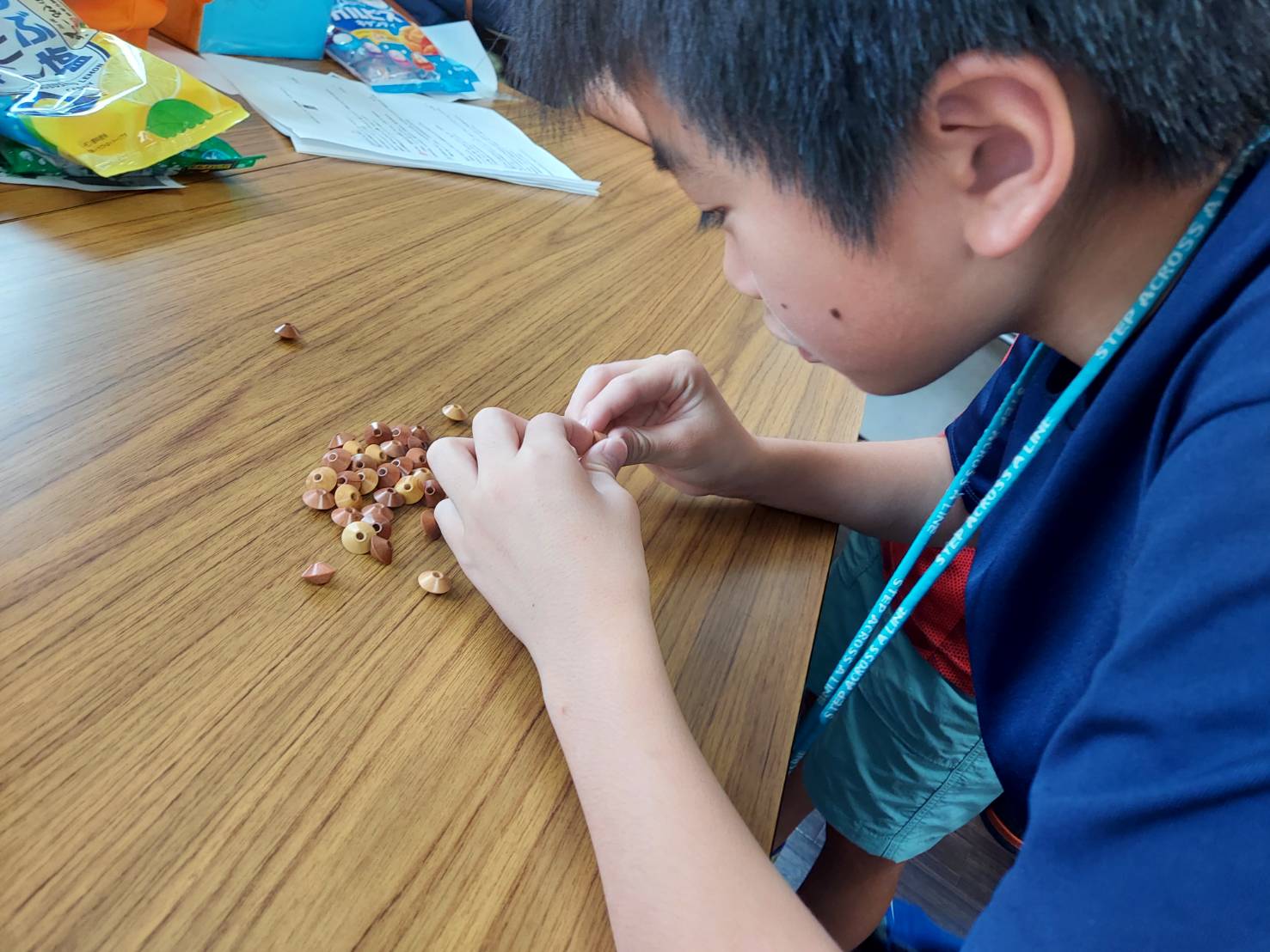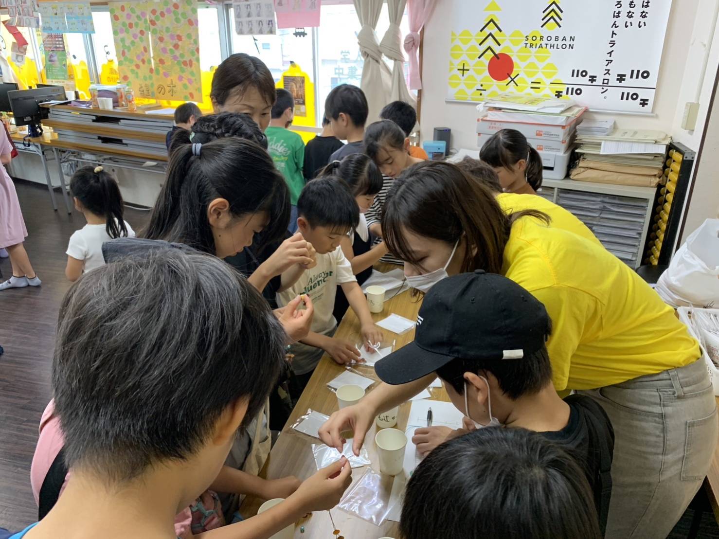 お誕生日メンバーはそろばんオリジナルストラップを自分で作る体験を行いました!先生方と一緒にチャレンジ♪