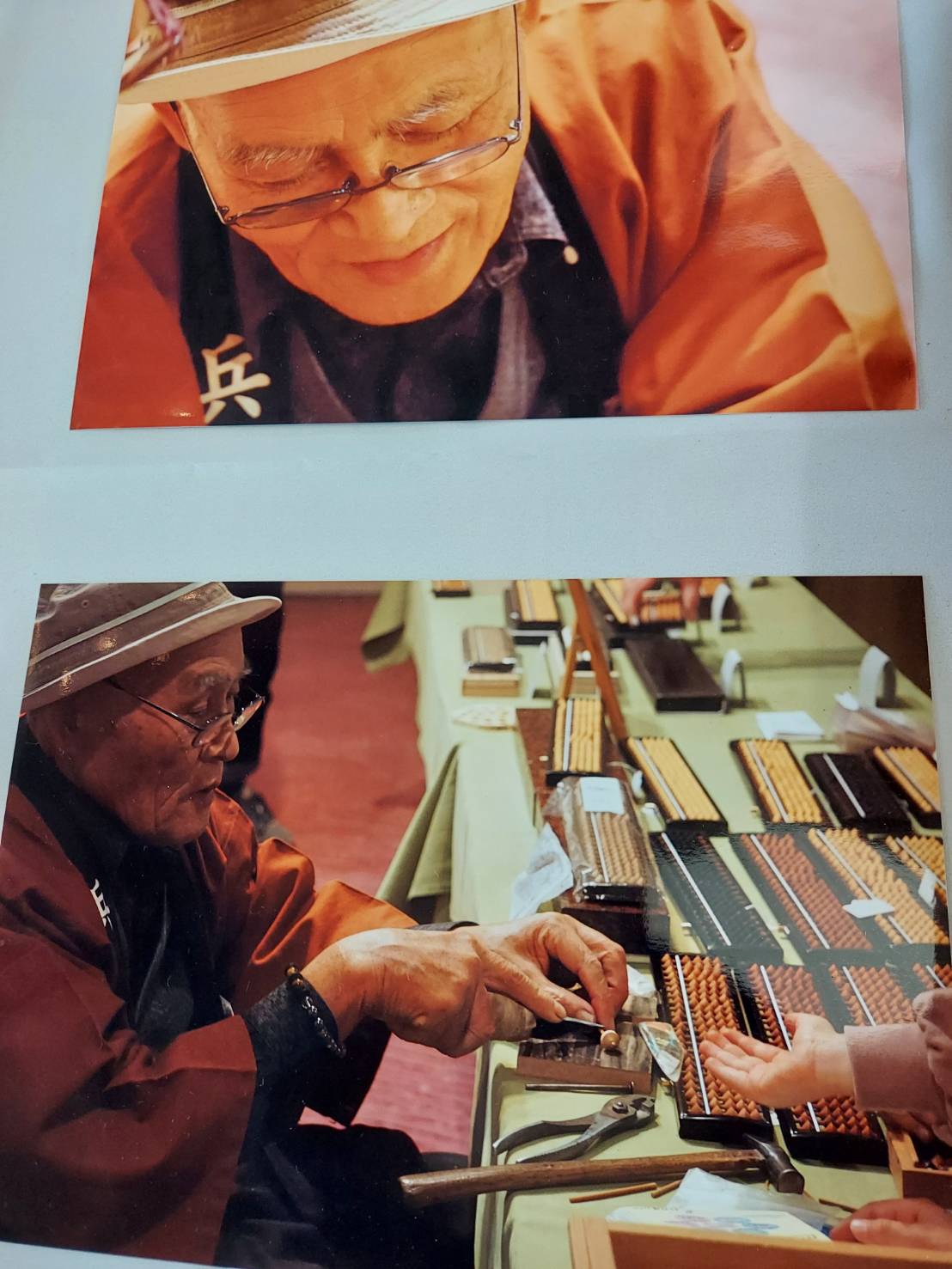 お弟子の高山さんが引き継いで師匠のそろばんを、会場に展示していらっしゃいました。