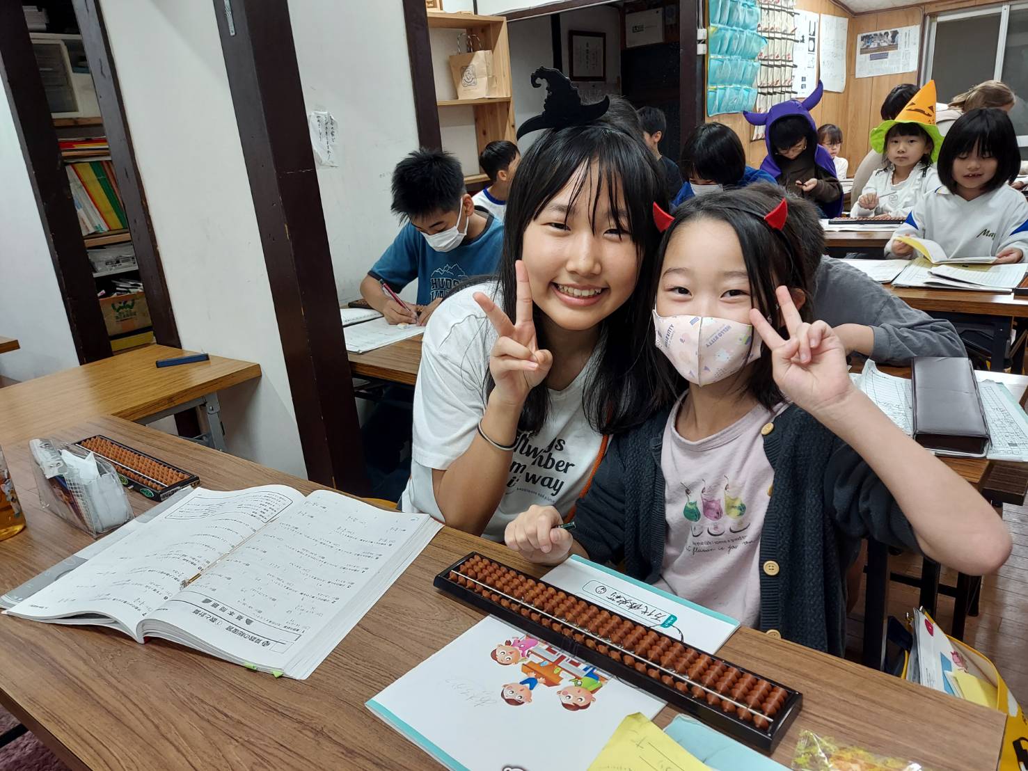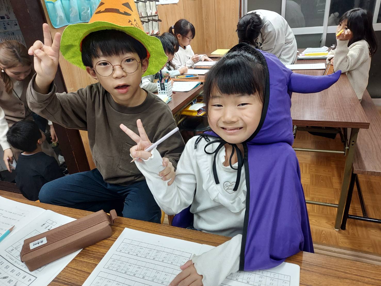 今年のハロウィーンの日の教室。子供たちの写真を撮影しました。