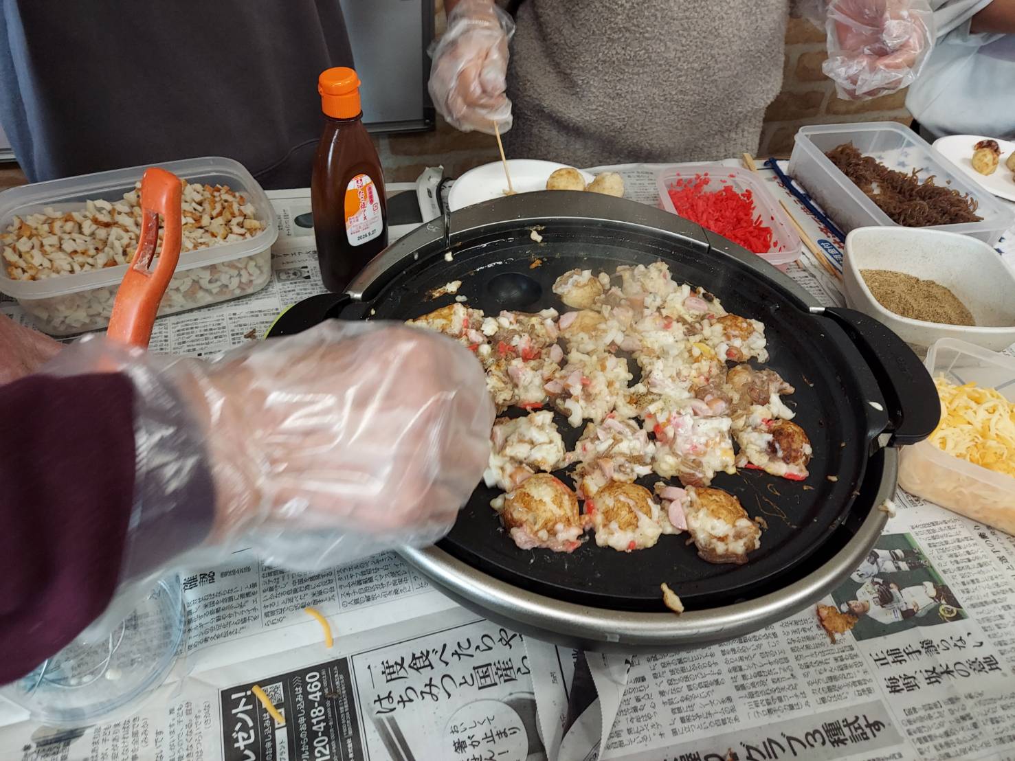 前日練習会の後のお楽しみ 恒例のたこ焼きパーティ