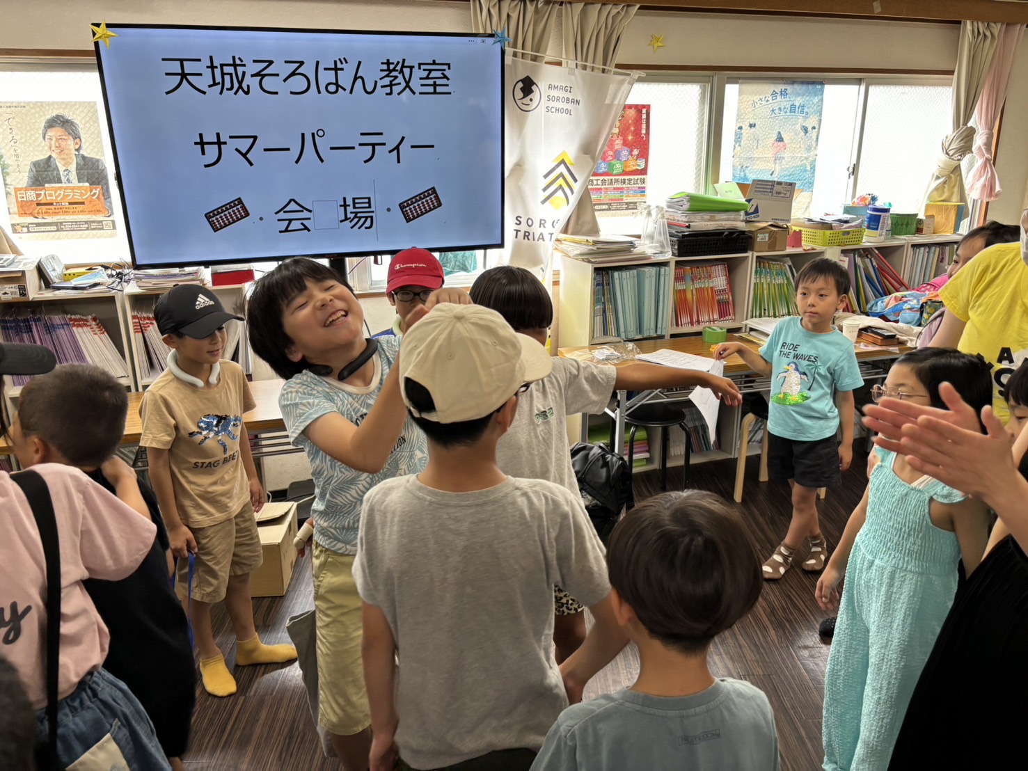 date | 2024.7.28〜 摩耶校・スカイ校・甲南校合同のサマーパーティー開催! 〜 Tweet 今年も、天城そろばん教室摩耶校・スカイ校・甲南校合同のサマーパーティーを、 4部制(各部30人限定)で開催しました! 司会者は当日ら7時45分集合で練習しました! 神戸大学 お笑い・ラジオ研究会に所属する あゆむ先生の漫才! 最後にみんなで記念撮影。今年も変顔、がんばりました。笑 今年も無事に開催できてよかったです! ご参加いただいた皆様、サポートしてくれた講師のみなさん、ありがとうございました^^ (代表 福岡)