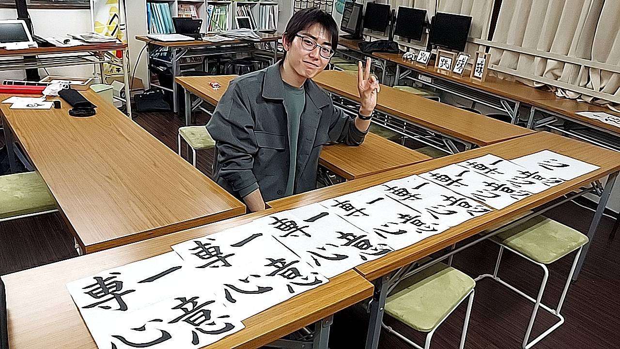 年末には、海外のそろばん生との交流があり、自分をで書いた書をプレゼントする予定です。