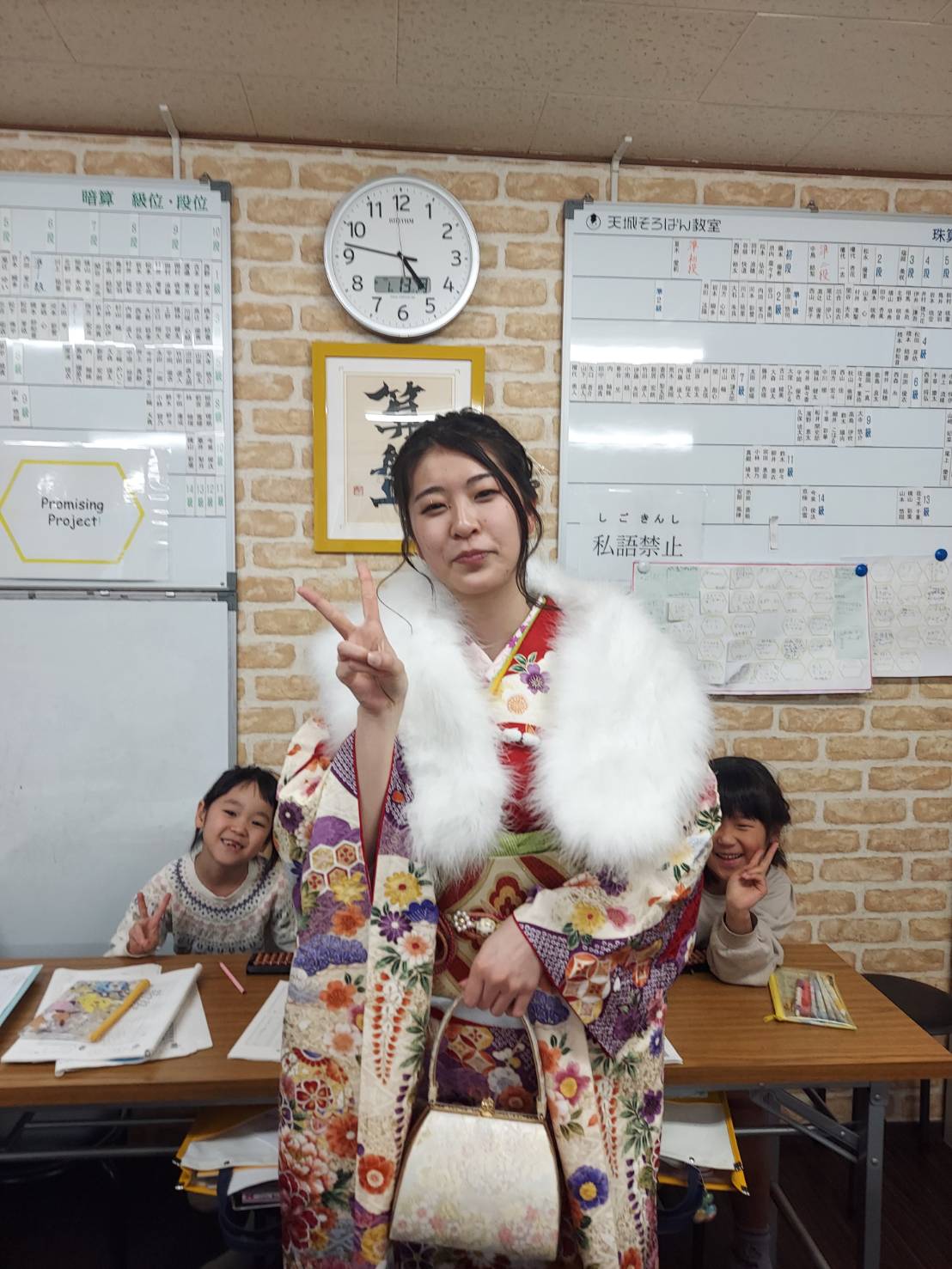 成人を迎えられた天城そろばん教室の学生講師のみなさん。