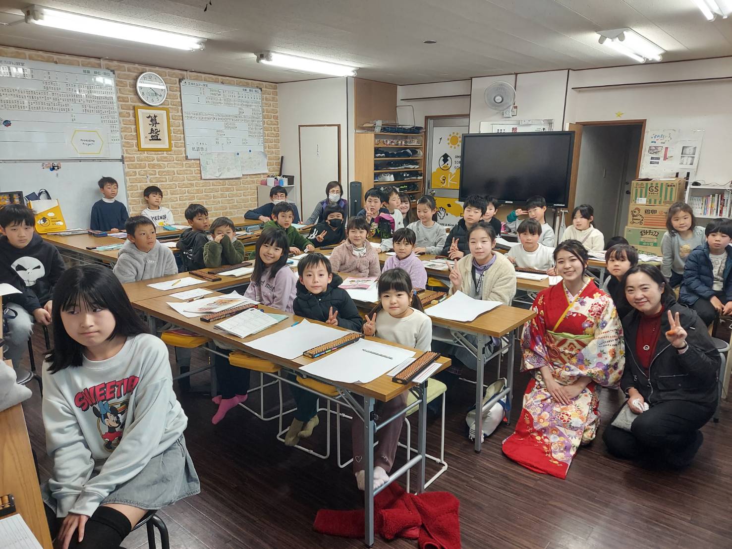 ゆき先生、晴れ着姿で読みあげ算(英語でも!)を披露をしていただきました。