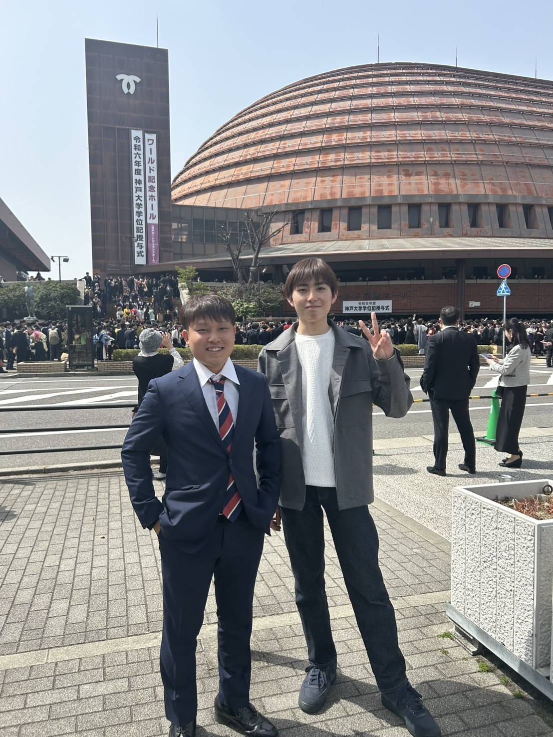 神戸大学の卒業式 ワールド記念ホール前での写真です。