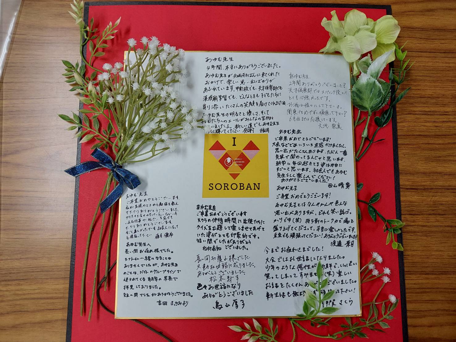 この春、天城そろばん教室からは3名の学生講師が卒業、それぞれ就職がきまり旅立ちました。