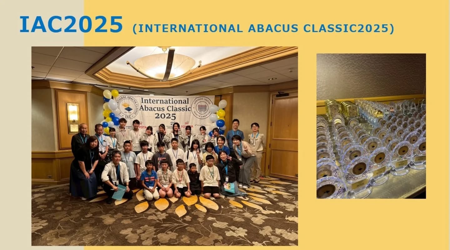 このたびアメリカで8/9,10、開催されたIAC2025 in Los Angelesに天城そろばん教室から3名の生徒が出場しました!