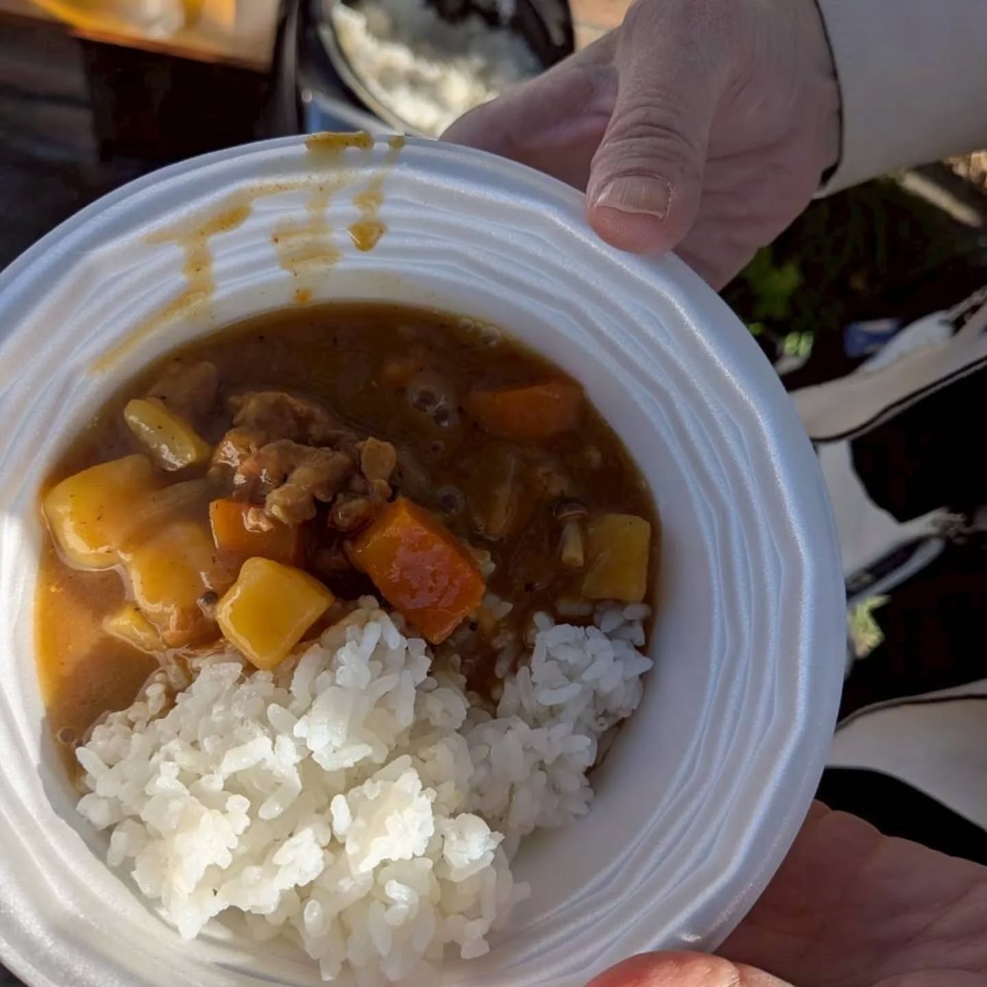 お昼は矢吹先生手作りの 特製カレー を、アトリエ前の自然の中でいただきました。