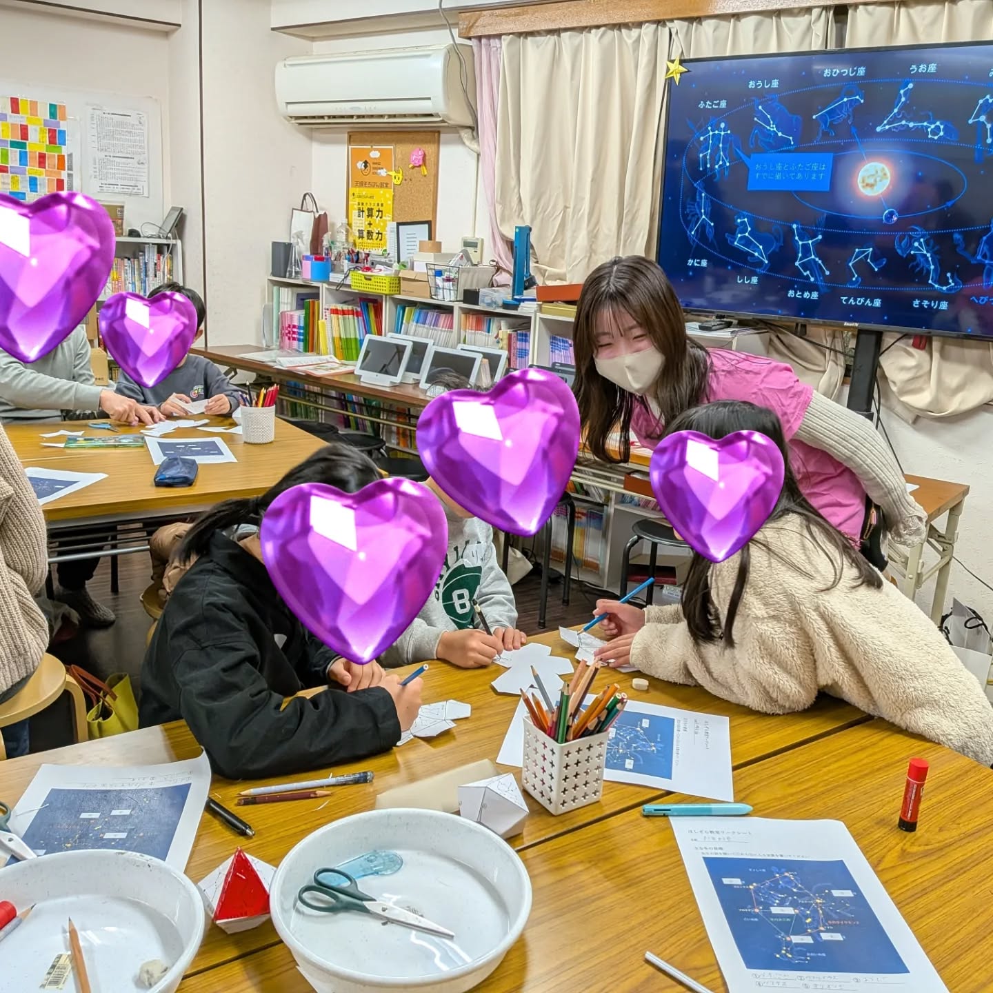date | 2026.2.15〜 「冬の星空教室」を開催! 〜 Tweet 先日、「冬の星空教室」を開催しました 当日は、神戸大学の学生スタッフ ふきみ先生・みずき先生・そうま先生とともに、 あたたかく、笑顔あふれる時間となりました。 それぞれの専門を生かしながら、 子どもたち一人ひとりに寄り添ってくれました。 冬の星座のおはなし プラネタリウム作り プラネタリウムの展開図も、 すべて ふきみ先生の自作。 試行錯誤しながら、 夢中になって取り組む姿がとても印象的でした 参加してくれた皆さんの楽しそうな表情に、 私たちスタッフも嬉しい学びのひとときをいただきました。 このような学びの時間を、 これからも少しずつ広げていけたらと考えています (代表 福岡)