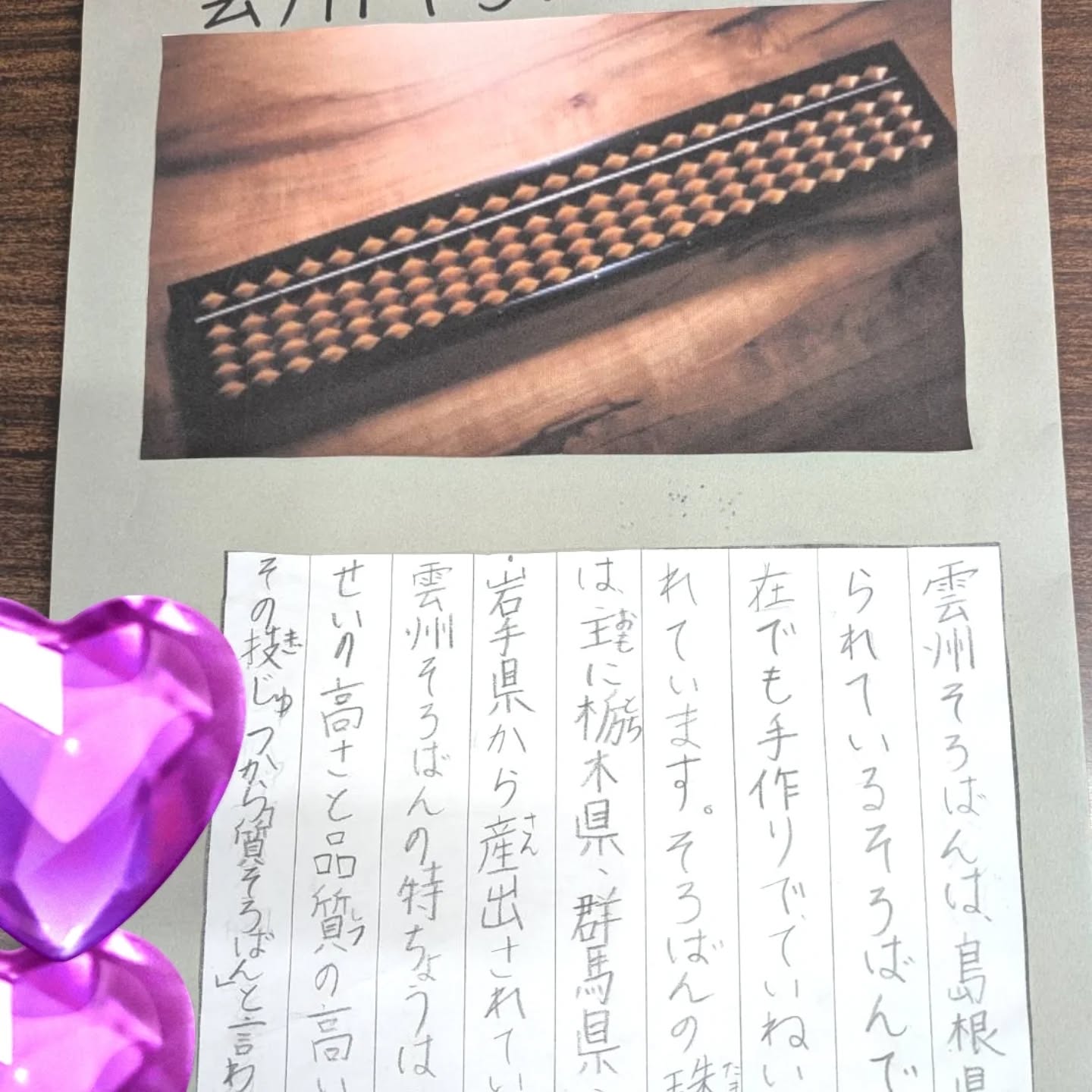date | 2026.3.15〜 国語の授業で、 そろばんを選ぶ。 〜 Tweet 摩耶校の生徒が 学校で「工芸品の魅力を伝えよう!」という課題で調べてくれたのは 雲州そろばんでした。 珠の原料、歴史、教室の由来まで。 ここまで調べるなんて… そろばん愛、ちゃんと伝わっています ありがとう (代表 福岡)